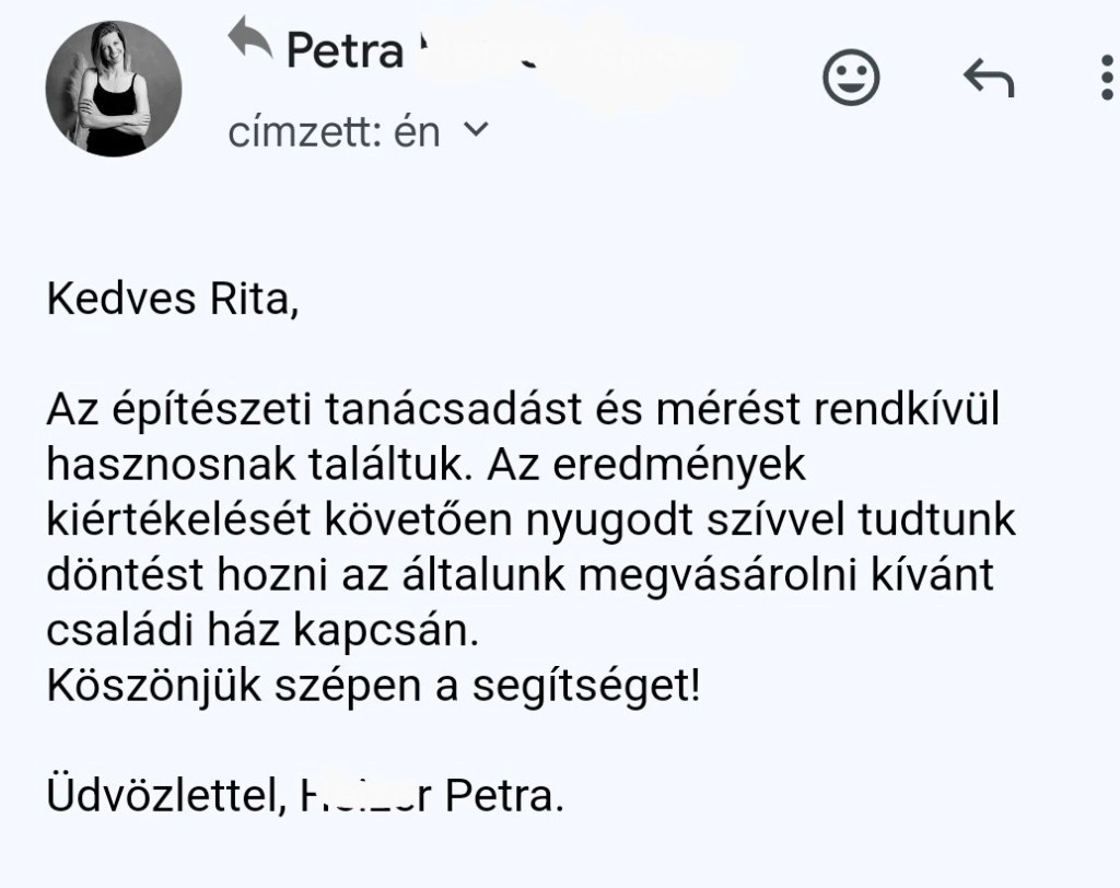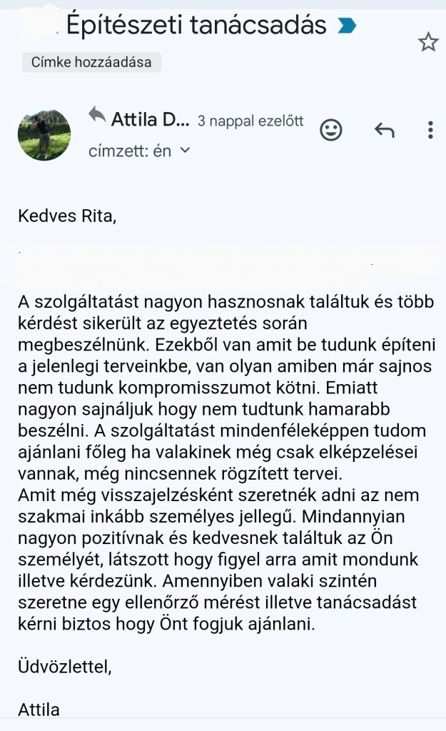 Építészeti jellegű kérdéseit is felteheti. Amennyiben csak 1-2 kérdése van, arra a mérés során szívesen válaszolok külön díjazás nélkül. Ha végigbeszélné az épülettel kapcsolatos kérdéseit kérjen építészeti szaktanácsadást.
